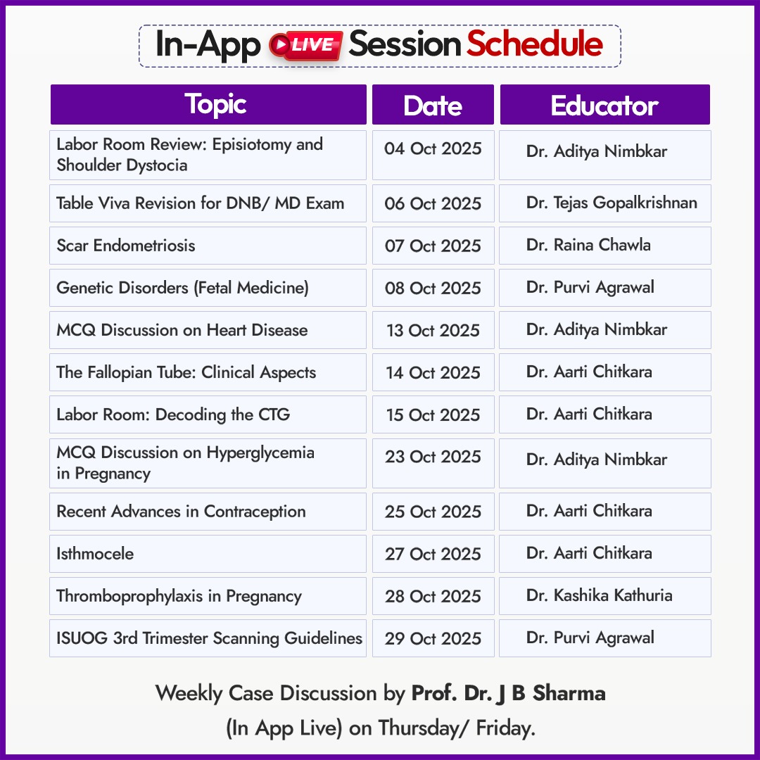 Checkout the In-App Live Session Schedule for the month of October 2025 Conceptual OBG Get Unlimited Access With Our Premium Membership Clinical Skills Surgical Videos Pre – recorded and live lectures Exam-Preparation ...and many more Checkout Plans & Offers Buddy Plan SIngle Plan Conceptual OBG hosted on App