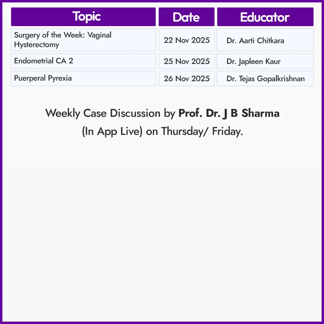 Checkout the In-App Live Session Schedule for the month of November 2025 Conceptual OBG Get Unlimited Access With Our Premium Membership Clinical Skills Surgical Videos Pre – recorded and live lectures Exam-Preparation ...and many more Checkout Plans & Offers Buddy Plan SIngle Plan Conceptual OBG hosted on App
